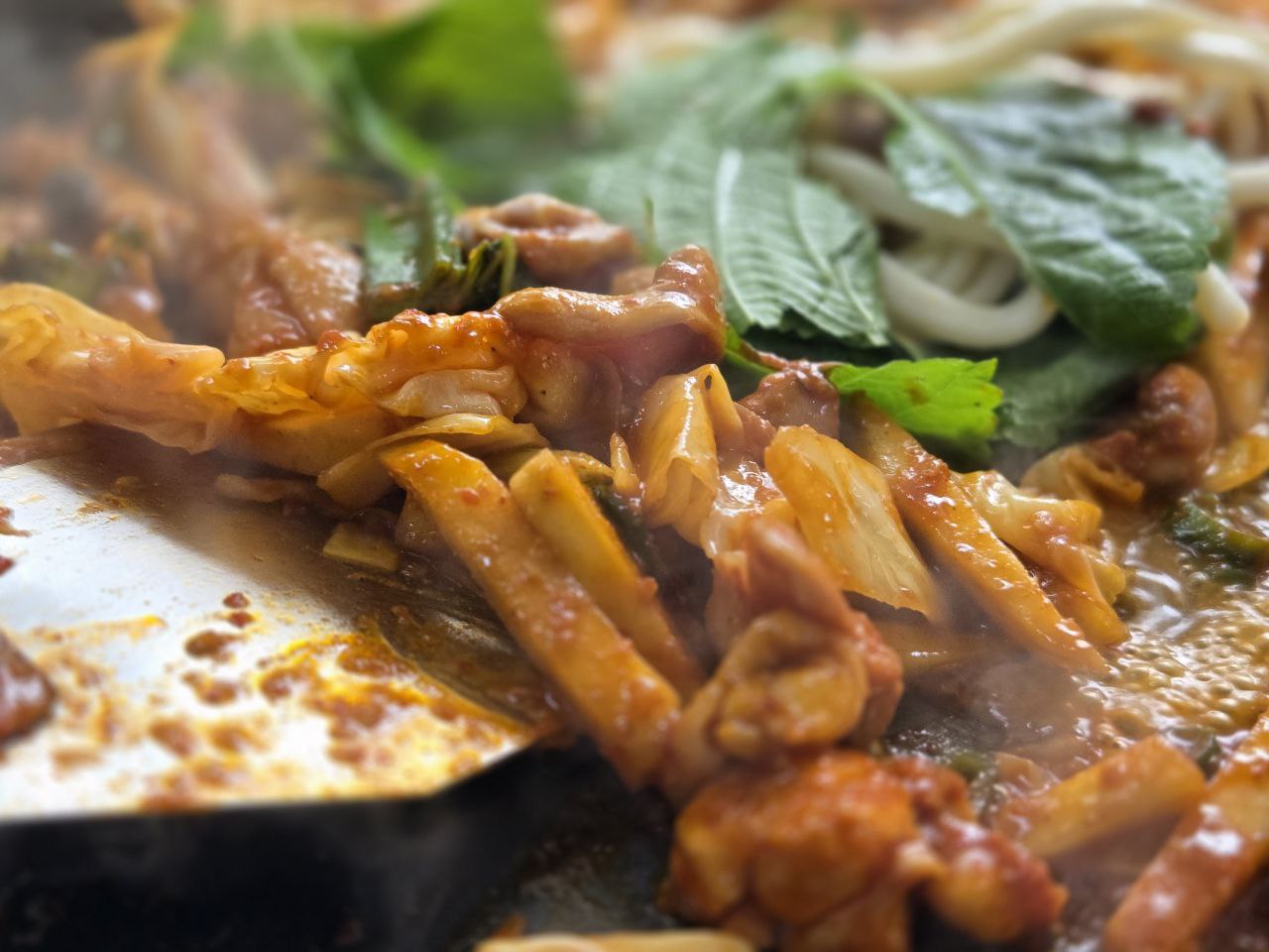 양념이 졸아들며 면발에 스며들 때쯤, 젓가락이 바쁘게 움직인다.