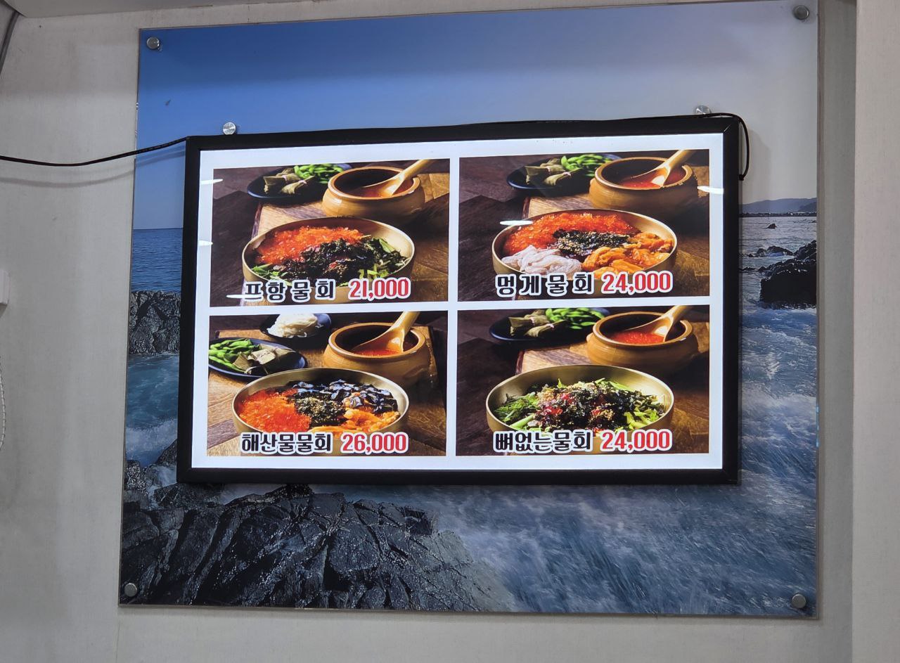 이날 선택한 기본 메뉴인 '포항물회'.
