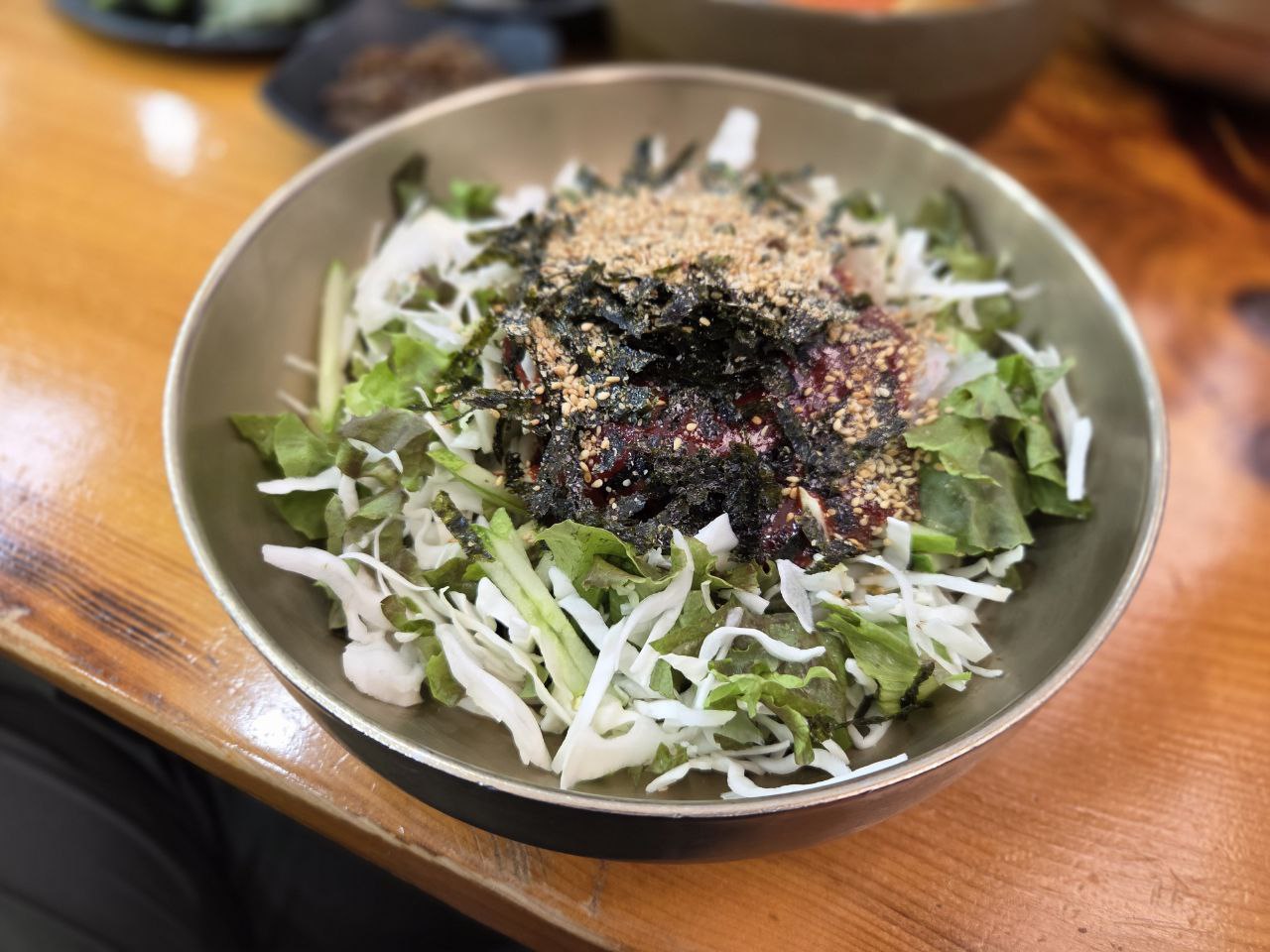 아울러 각종 채소와 김가루, 새콤한 특제소스까지 비주얼부터 살아있다.