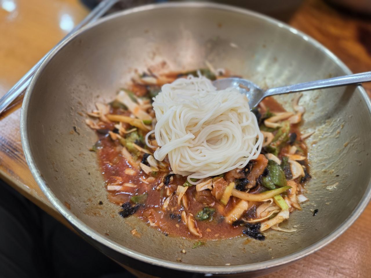 절반 정도 남았을 때 소면과 함께 국물을 가능 붓는 것이 꿀팁.