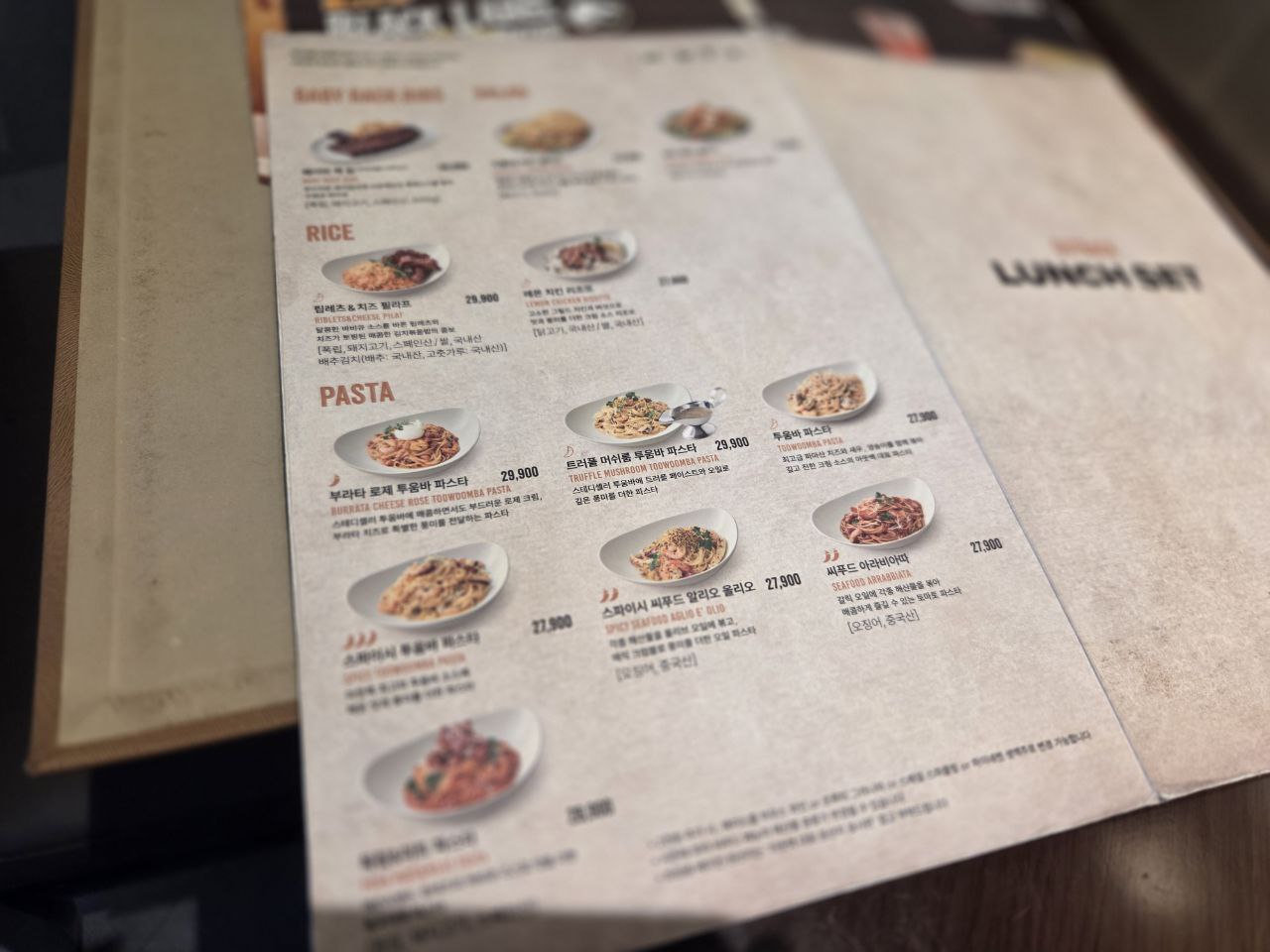 이날 주문한 건 런치 세트 중 짐붐바 스테이크와 스파이시 투움바 파스타.