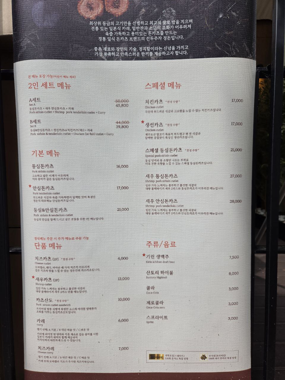 A세트는 등심돈카츠와 새우튀김, 안심돈카츠에 카레가 곁들여진다.