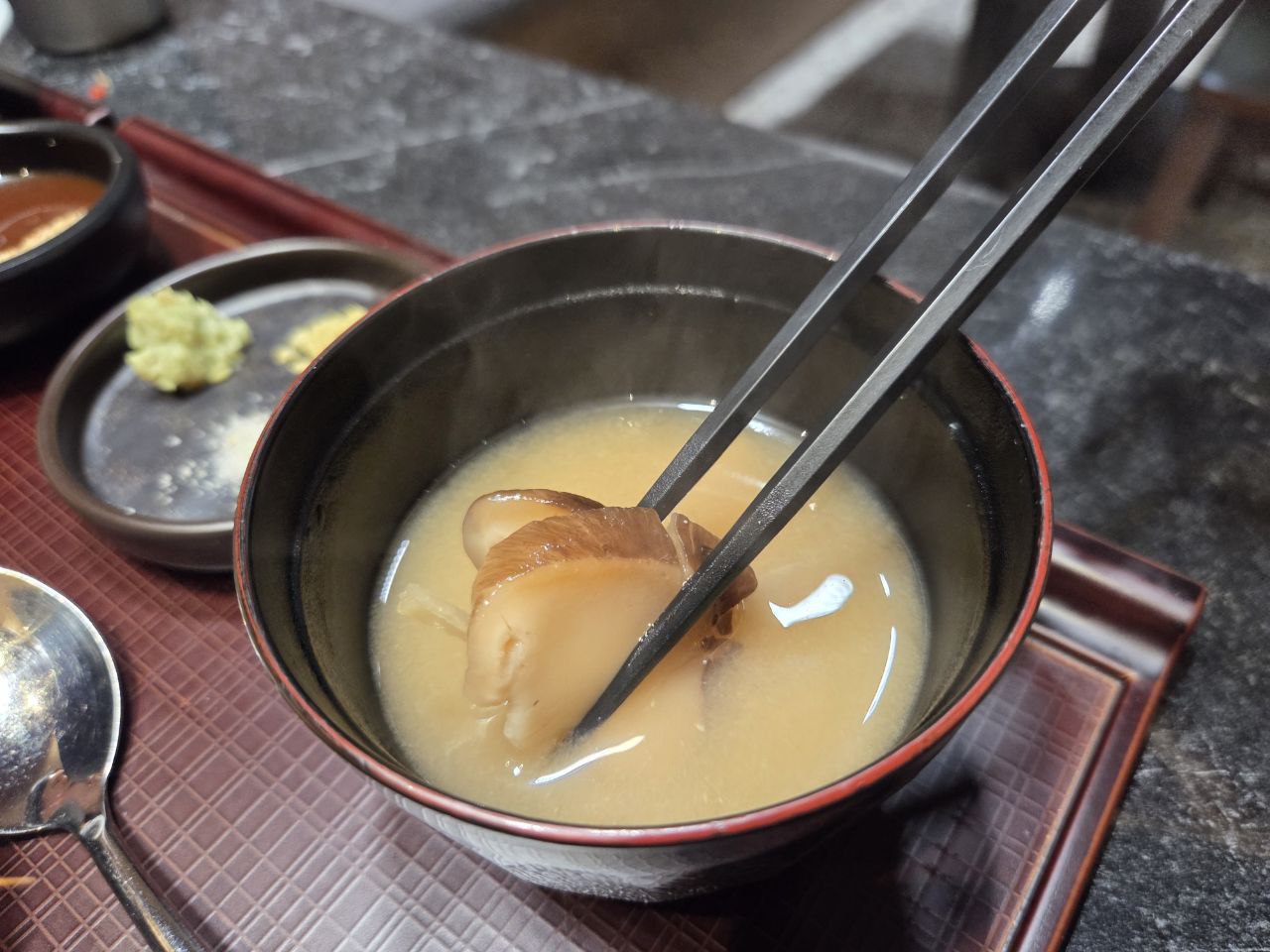 여느 돈가스집에서 볼 수 없는 건더기 가득한 깊은 장국의 맛.