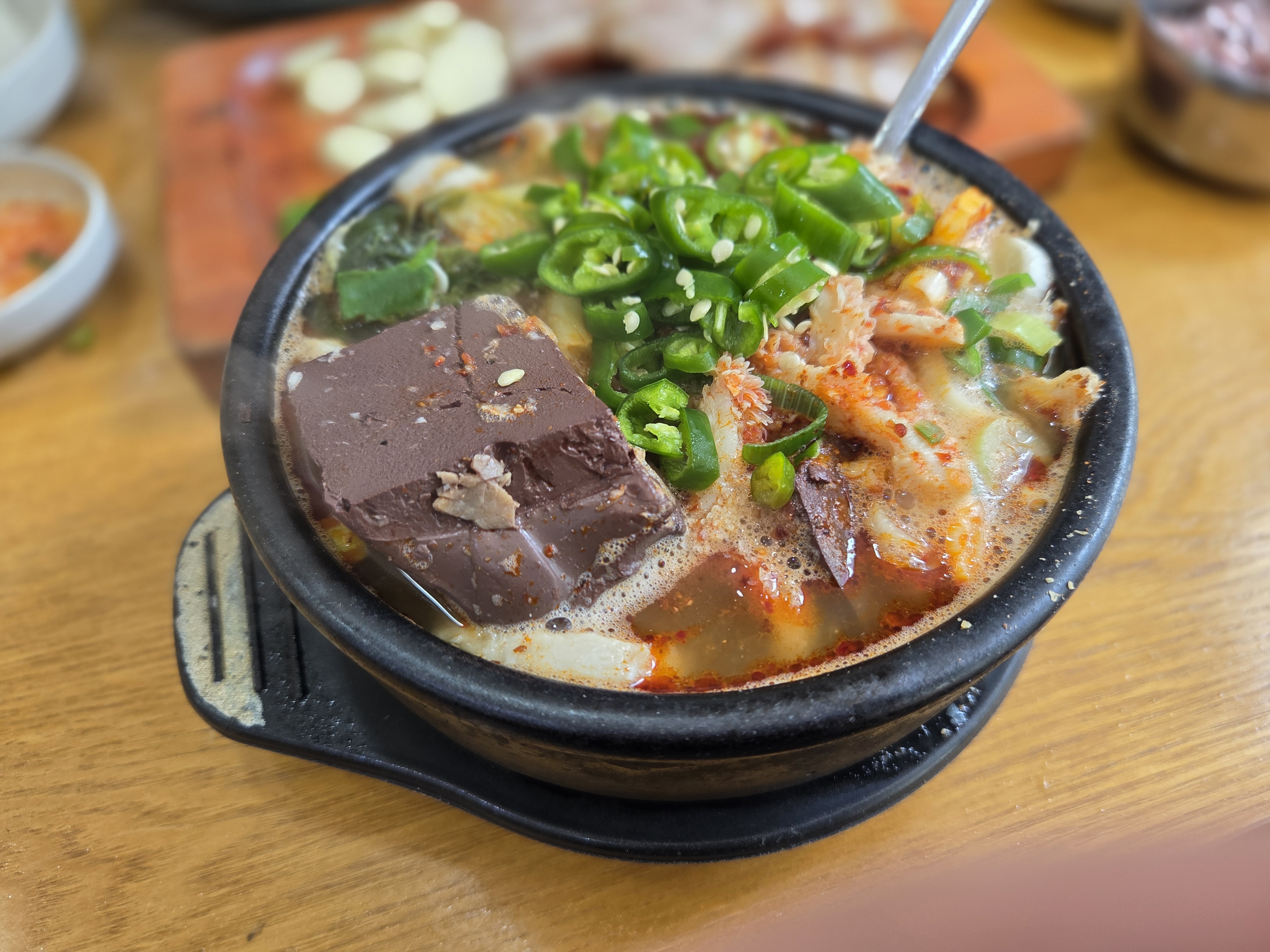 선지와 내장이 신선해 잡내가 없고 국물은 깊고 칼칼하다.