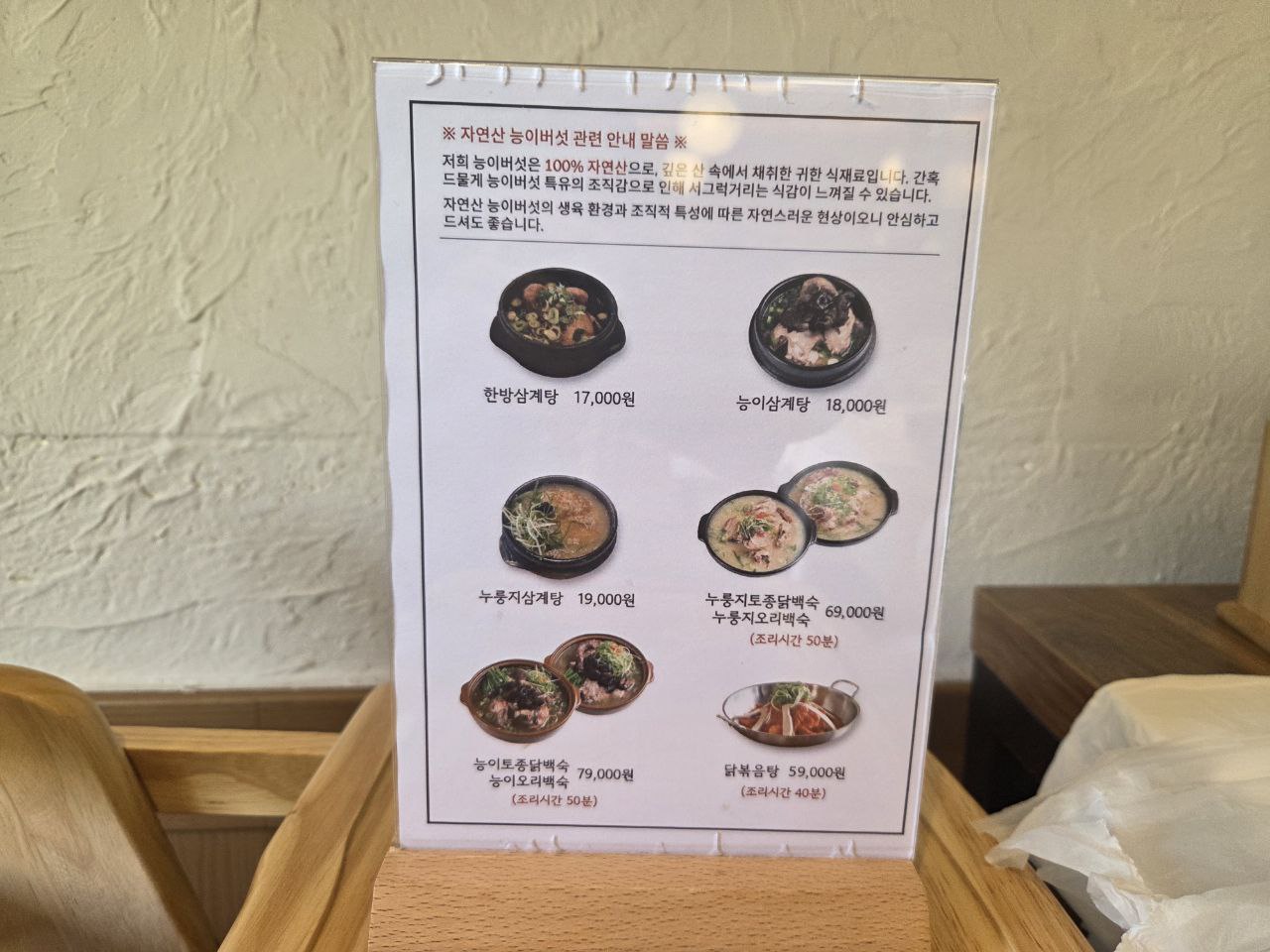 조리 시간이 약 50분 정도 걸리기 때문에 사전에 연락이 필요한 것.