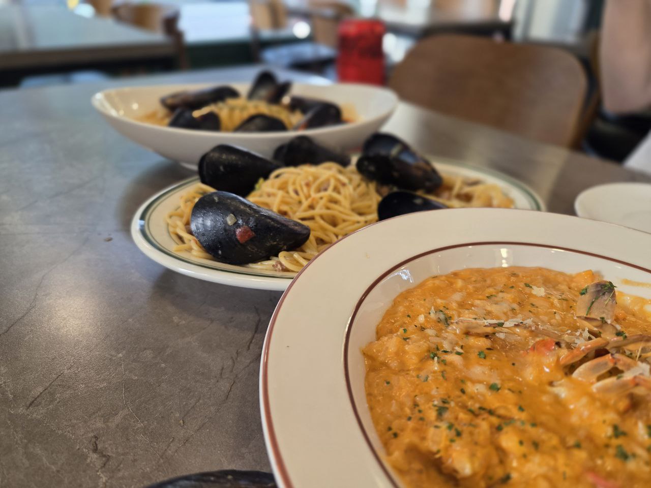 이날 주문한 메뉴는 매콤 오일 장 파스타, 상하이 파스타, 꽃게 로제 리조토.