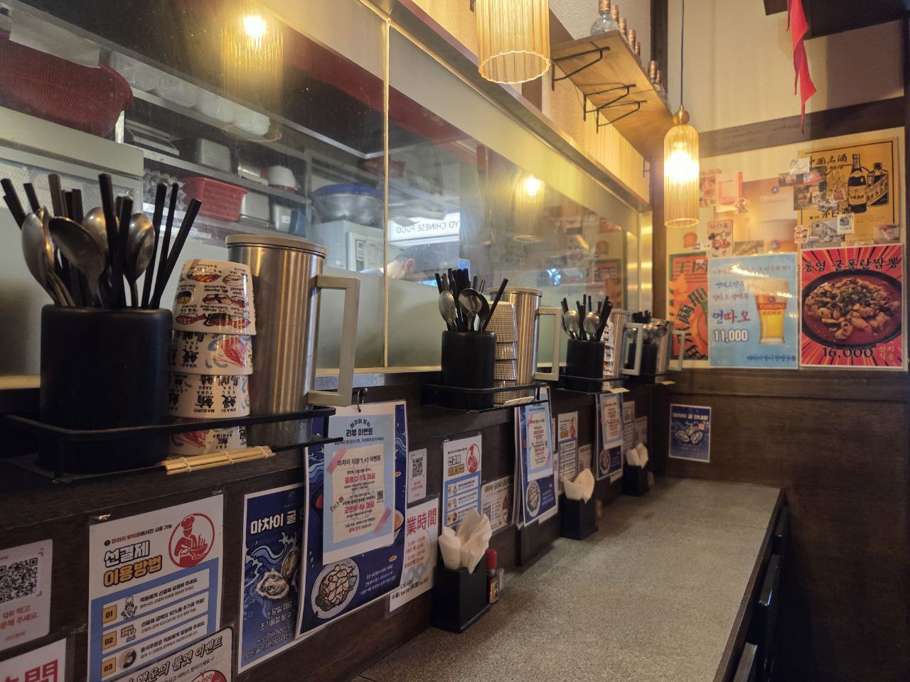 하지만 겨울에 굴짬뽕밥을 시켜놓고 기다리는 순간은 나쁘지 않다.