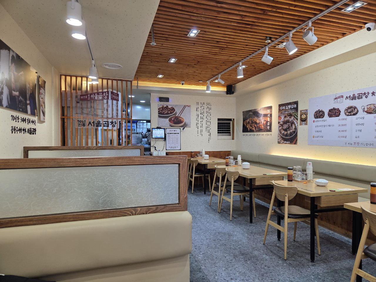 깔끔한 가게에서 곱창과 국밥의 조합이 만족스러운 한 끼다.