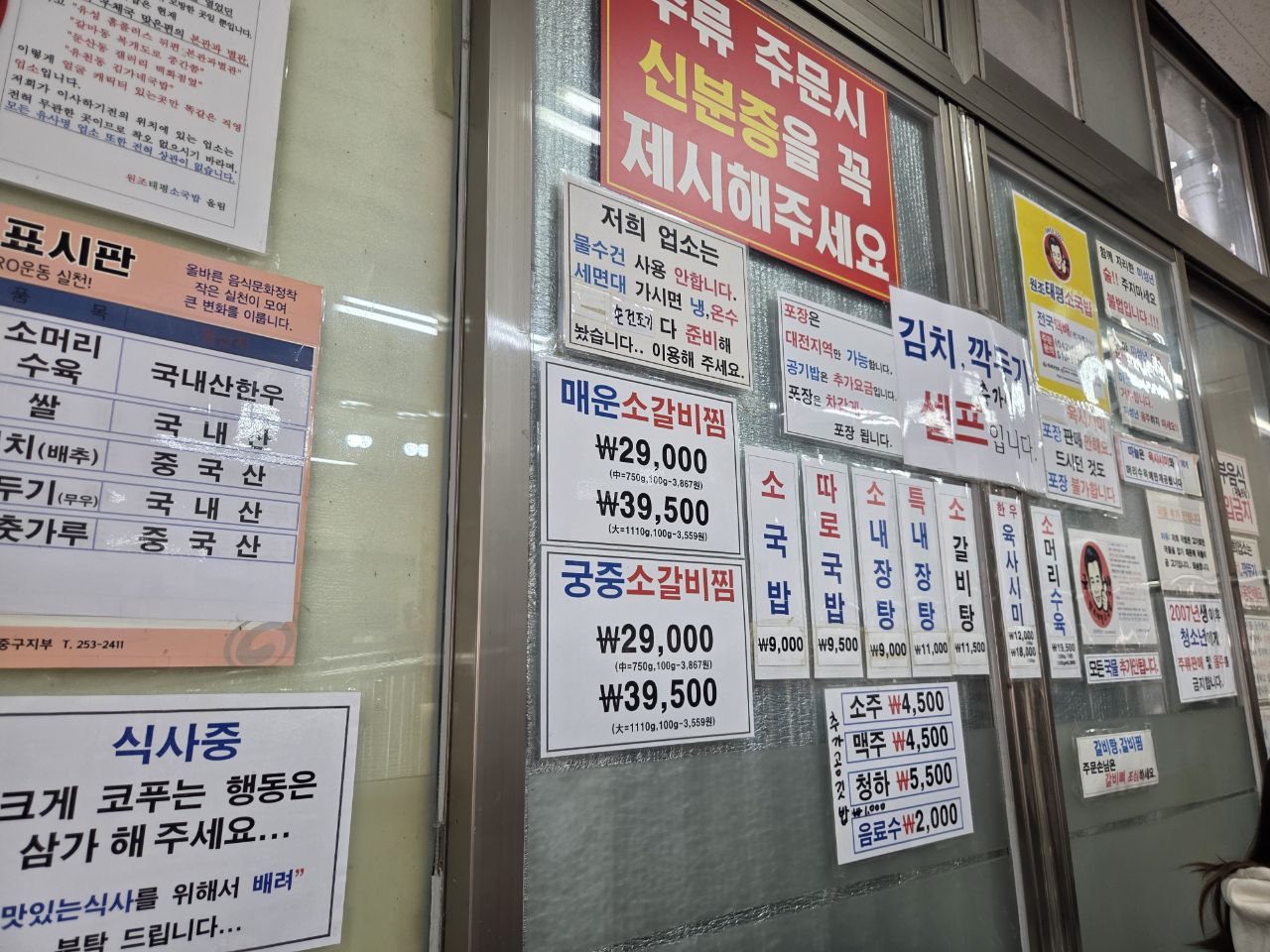 국밥집에서 시킬 수 있는 다양한 메뉴들. 아주 좋다.